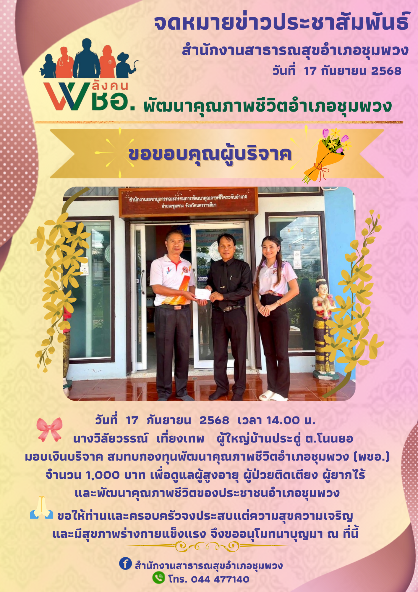 เดิมอำเภอชุมพวงขึ้นกับอำเภอพิมาย ในปี พ.ศ.2499 กระทรวงมหาดไทยได้อนุมัติให้ตั้งกิ่งอำเภอขึ้น โดยใช้ชื่อว่า "กิ่งอำเภอชุมพวง" คำว่า"ชุมพวง" นั้นมาจากชื่อพรรณไม้ที่มีมากในพื้นที่ คือ ต้นพลวง ได้ทำการเปิดกิ่งอำเภอ ในเดือนพฤศจิกายน 2500